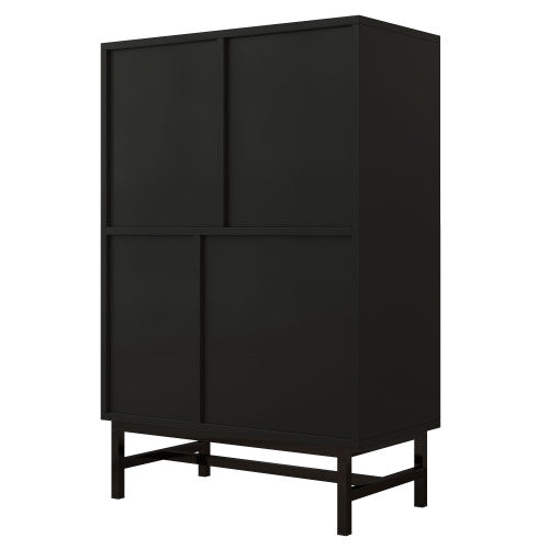Corp negru elegant cu accente naturale de lemn, pentru un aspect clasic și modern.